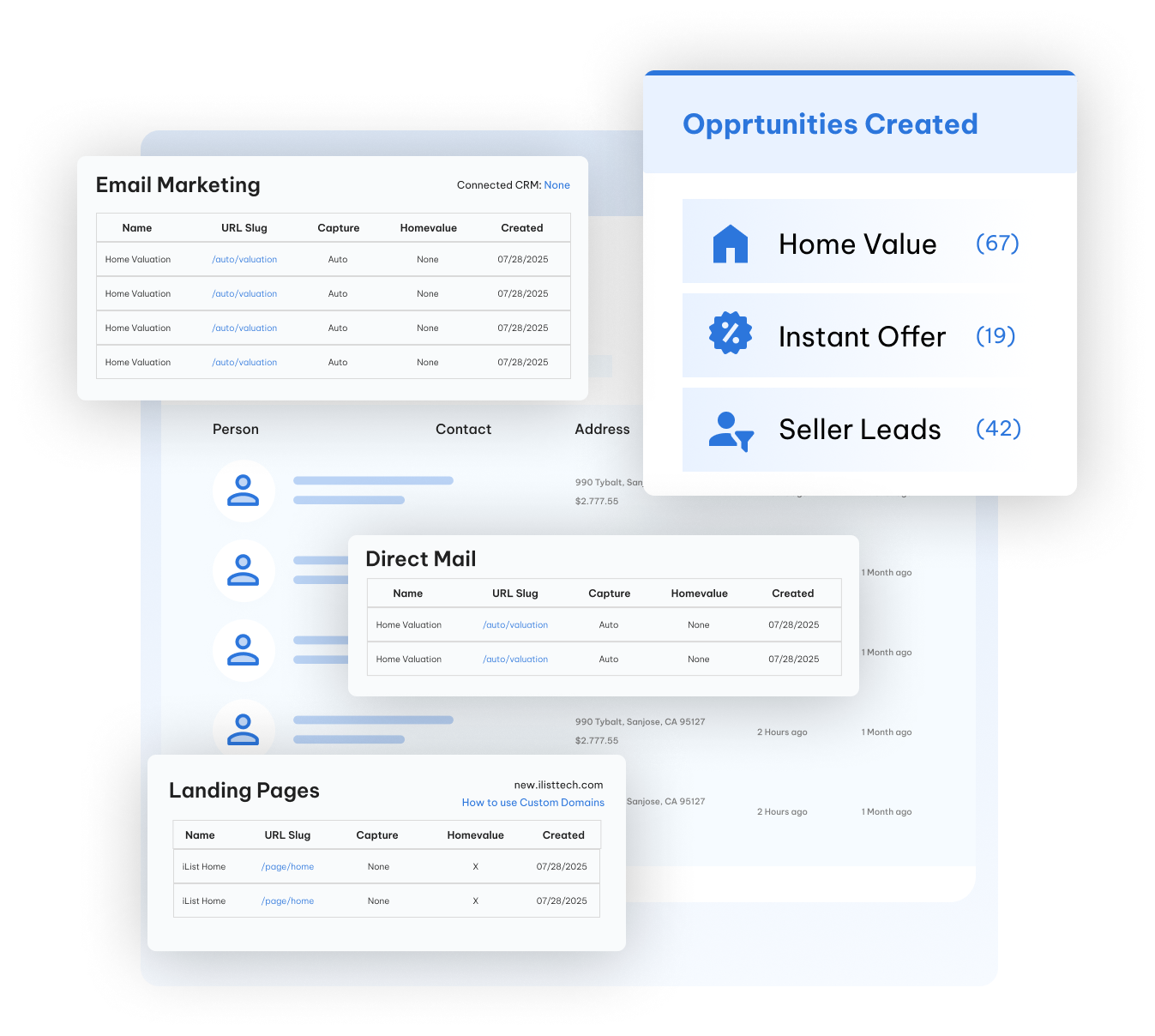 Access powerful Cash Offer and Home Value tools—built into landing pages, email automation, and direct mail—fully integrated with your CRM to generate more opportunities.